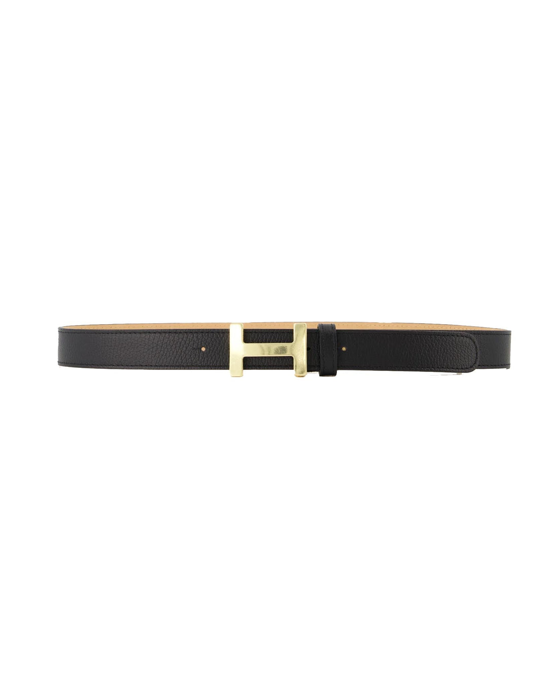 Minimalist Black Waist Belt with Gold Chain-Link Detail