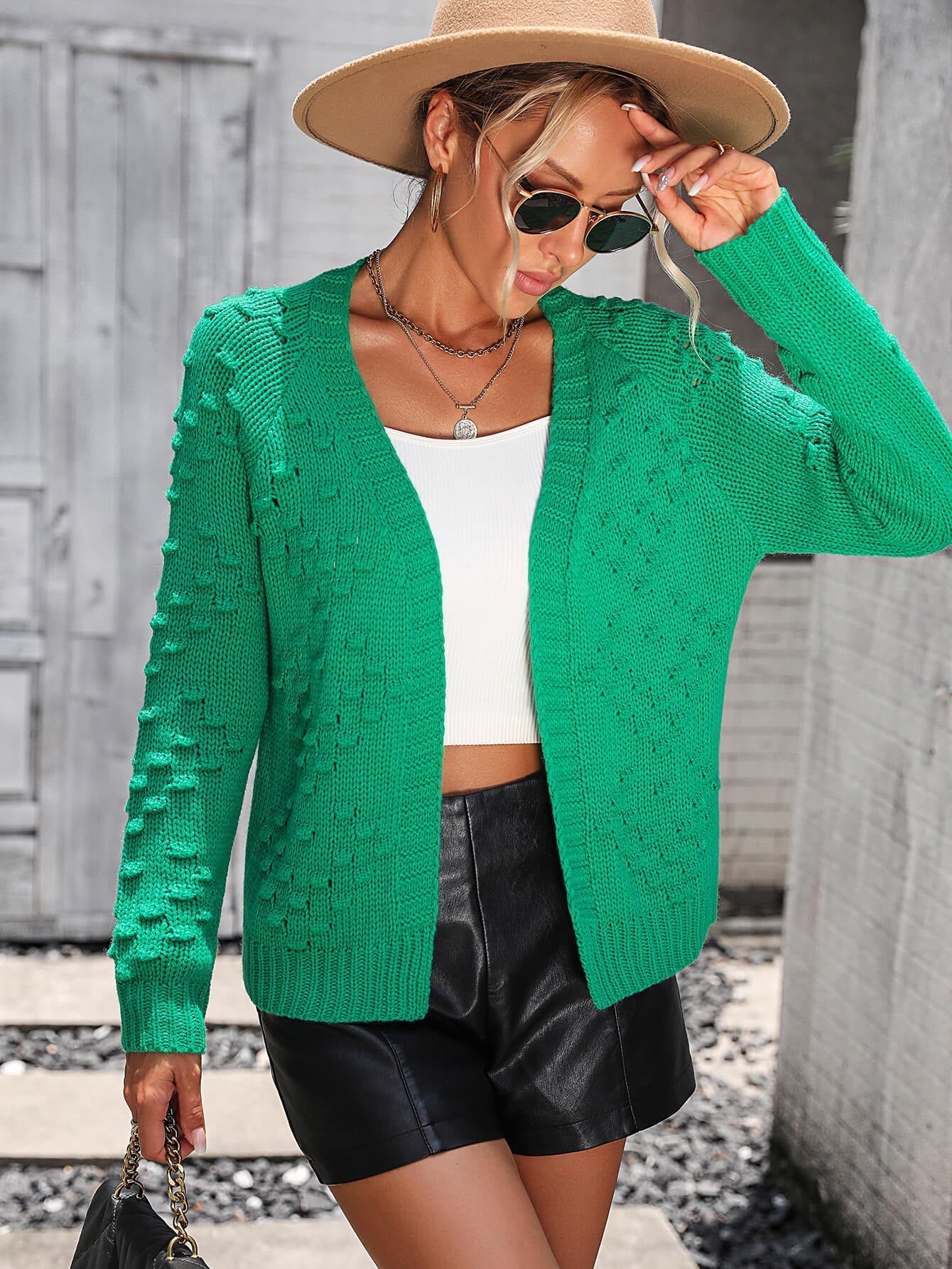 Elevate your layering game with the Stonehaven Textured Knit Cardigan, a beautifully crafted piece that combines intricate detailing with effortless wearability. Designed with a unique 3D bobble knit pattern across the body and sleeves, this open-front cardigan brings rich texture and a subtle statement to even the simplest outfits. The soft knit fabric and relaxed fit ensure all-day comfort without sacrificing style.