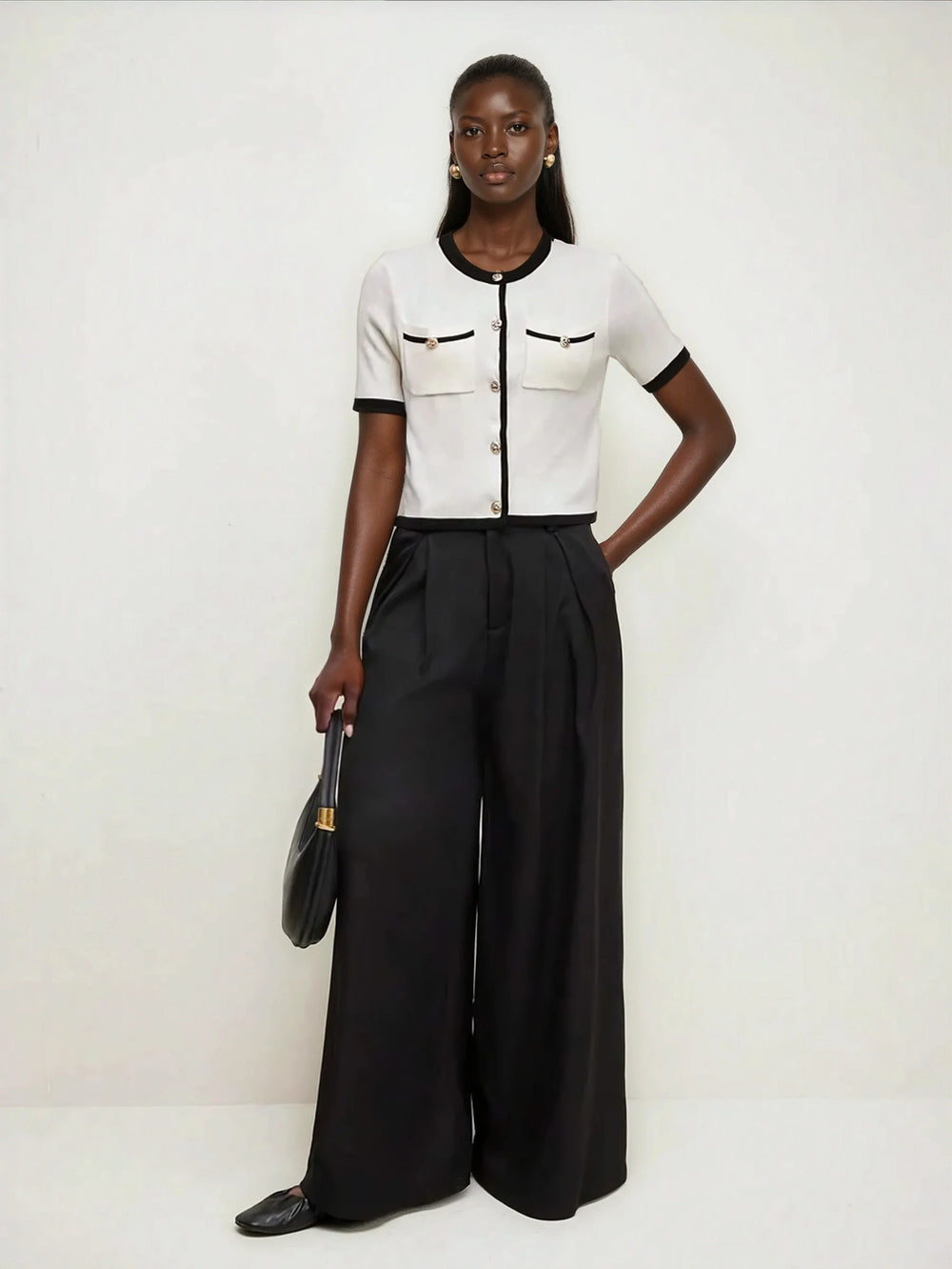 Elegant Contrast Binding Pockets Cardigan