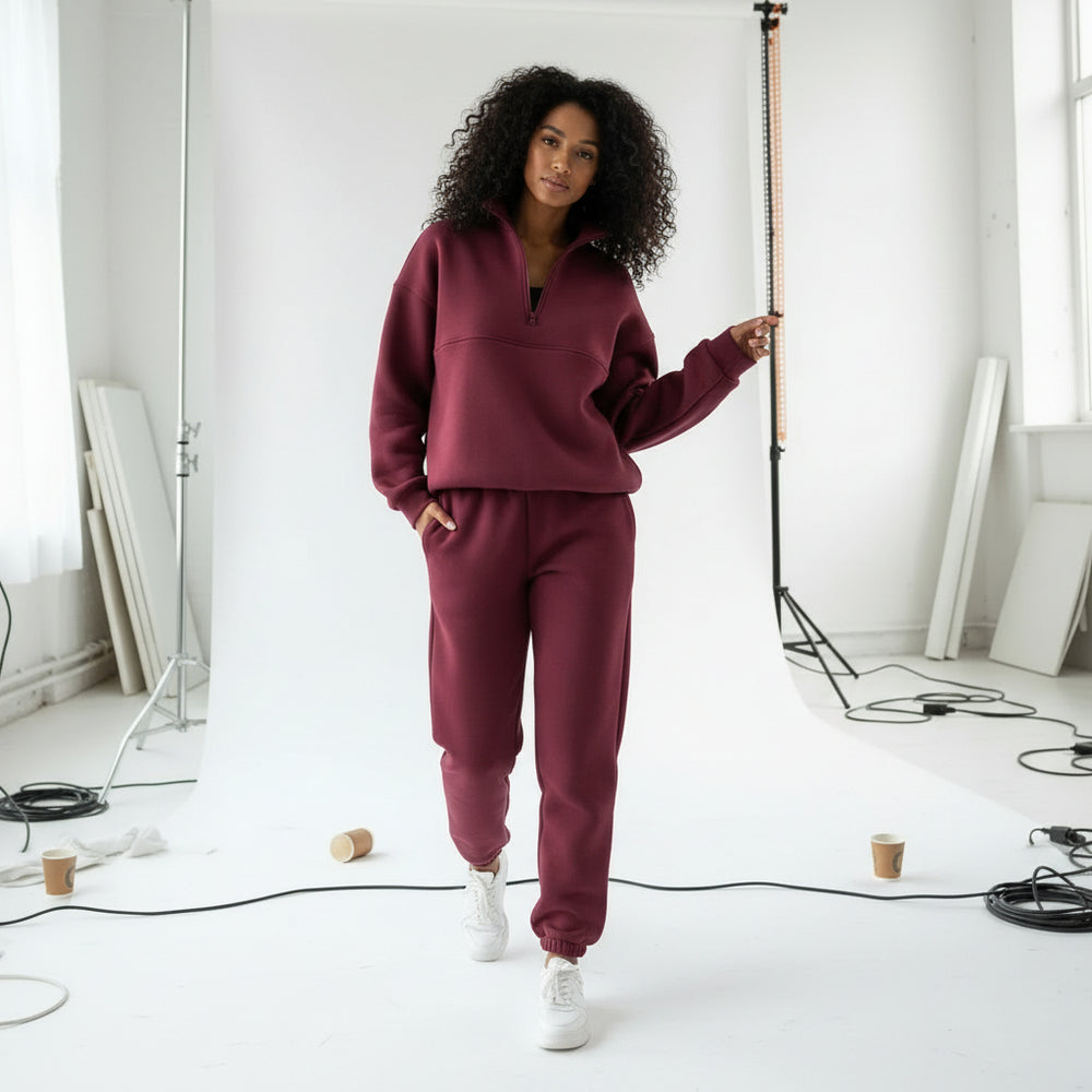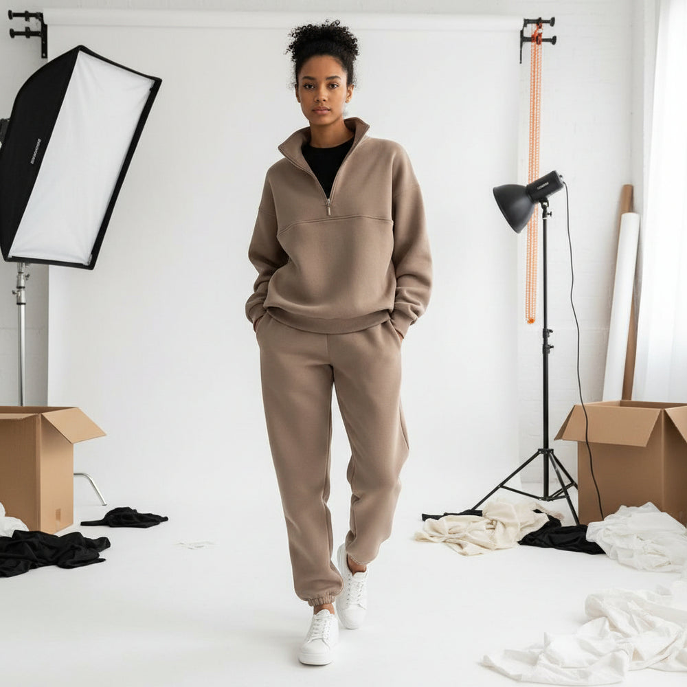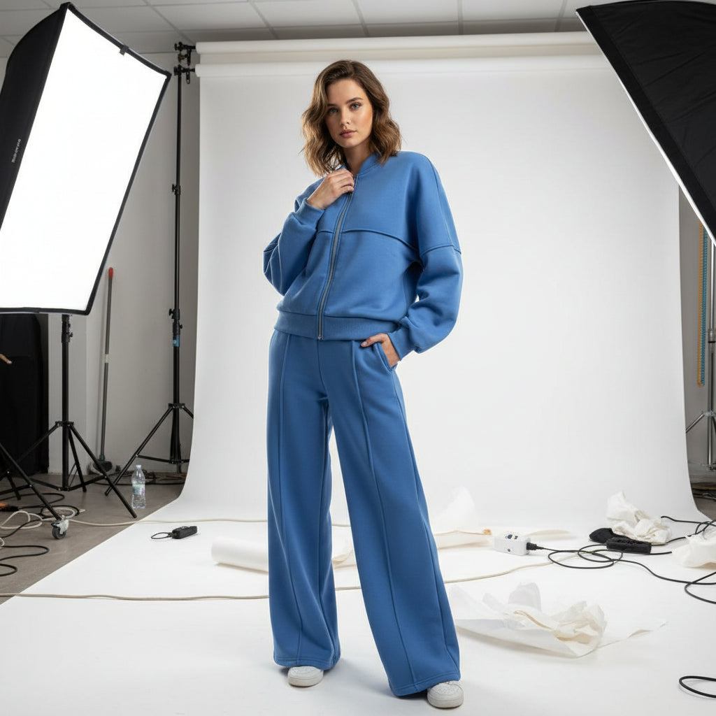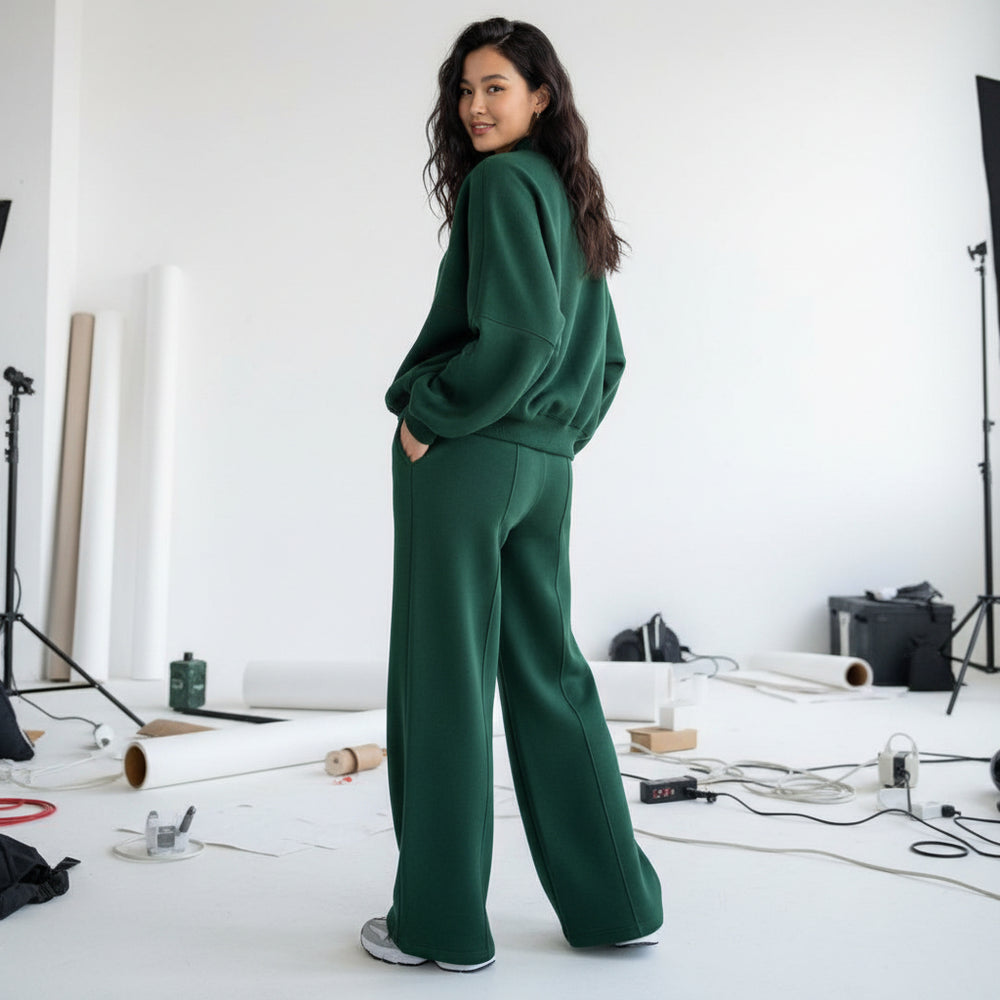 Zip-Up Sweater & Pants Set - Dusty Sage