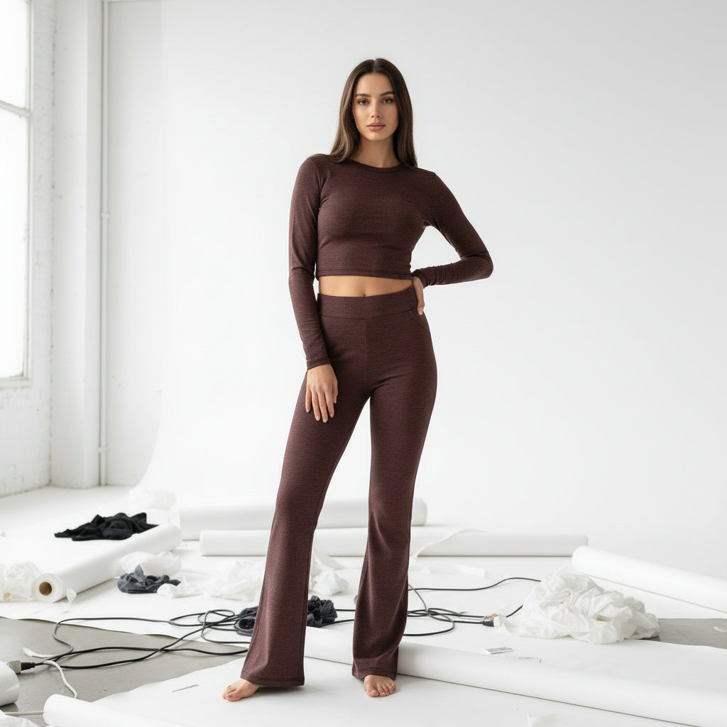 Stretch Crop Top & Flared Lounge Set - Burgundy