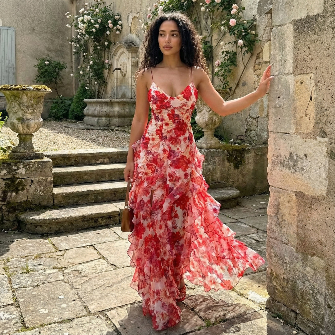Cyranne - Floral Print Ruffle Maxi Dress