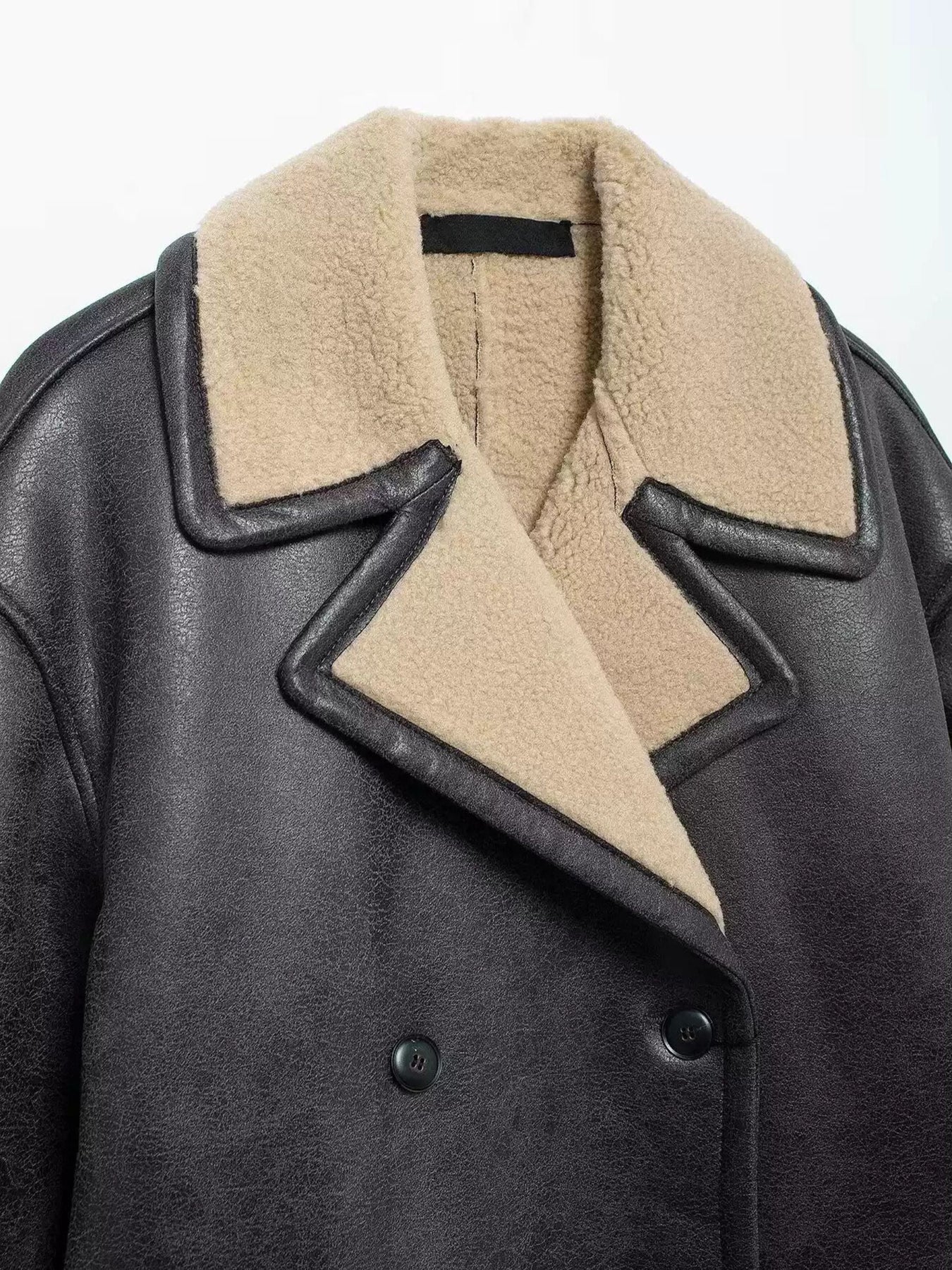 Turn heads this season with the Alpine Affair Faux Shearling Coat – a bold blend of structured elegance and off-duty cool. Designed with a luxe shearling lining, sharp lapels, and a classic double-breasted front, this coat offers the perfect mix of warmth and sophistication.