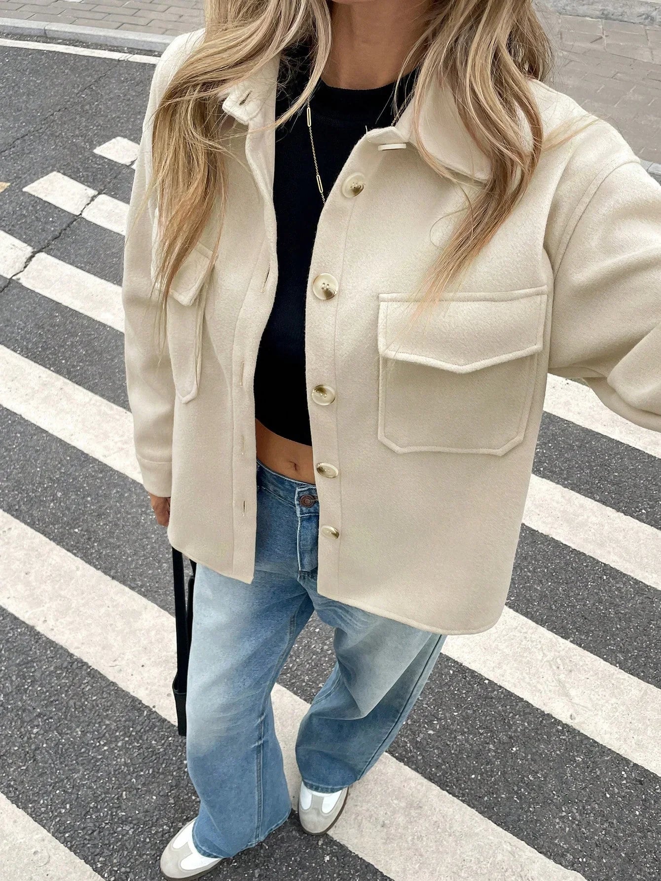 Level up your outerwear game with the City Stroll Button-Up Shacket, the perfect hybrid of a shirt and jacket for crisp days on the go. Featuring structured front pockets, a soft-touch finish, and a cropped cut, this piece blends utility with off-duty chic.