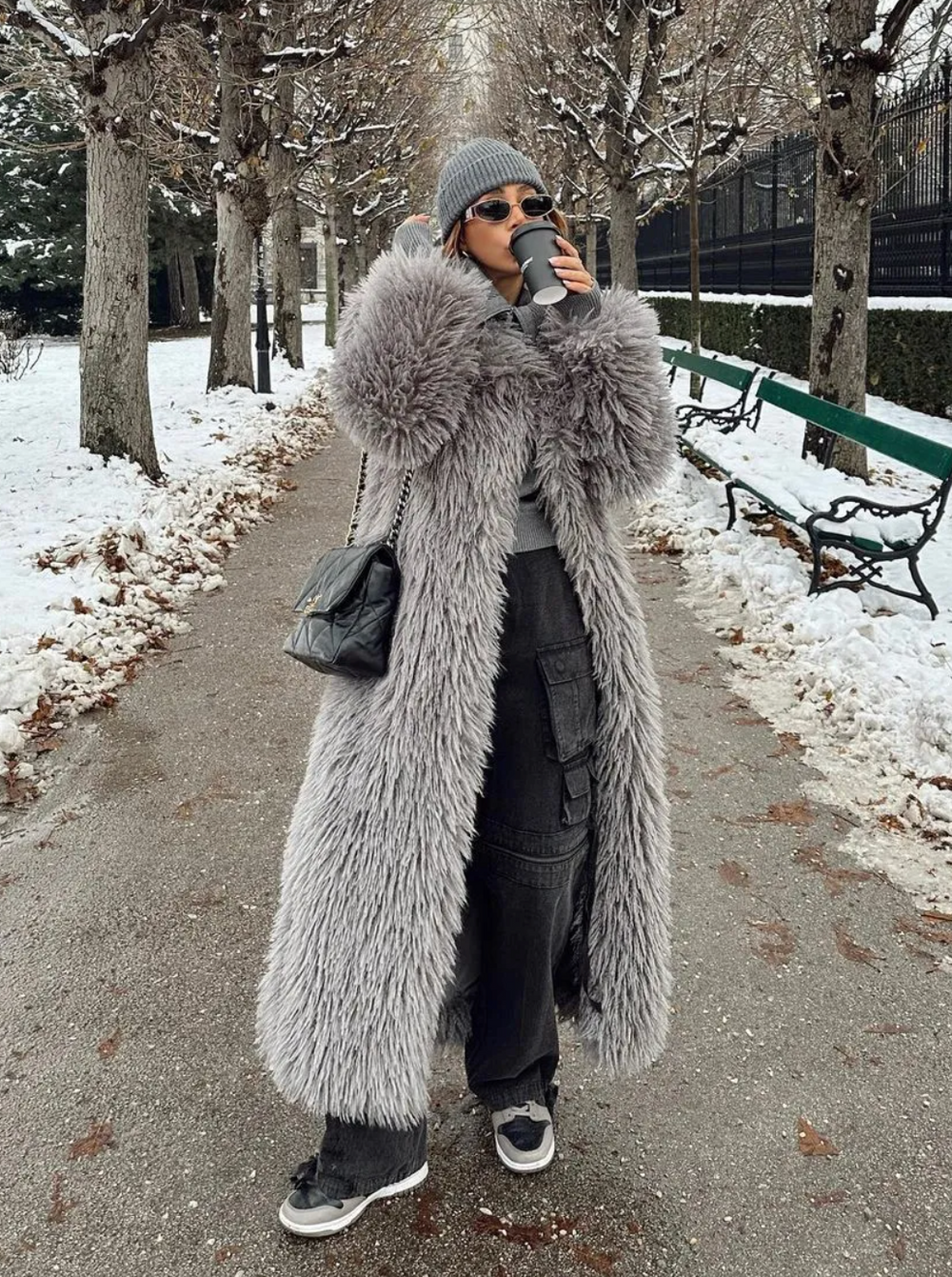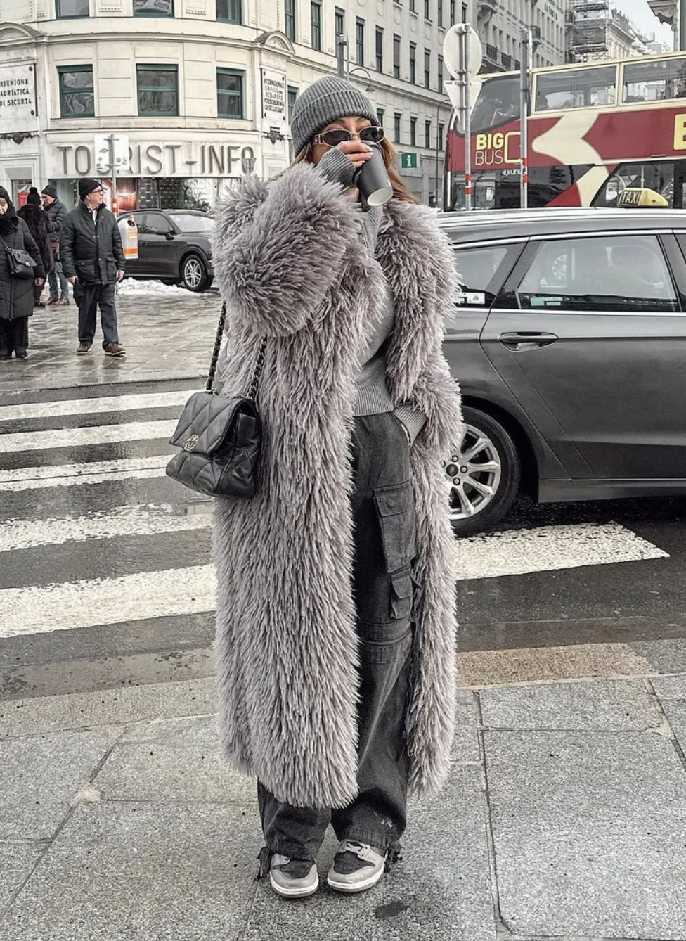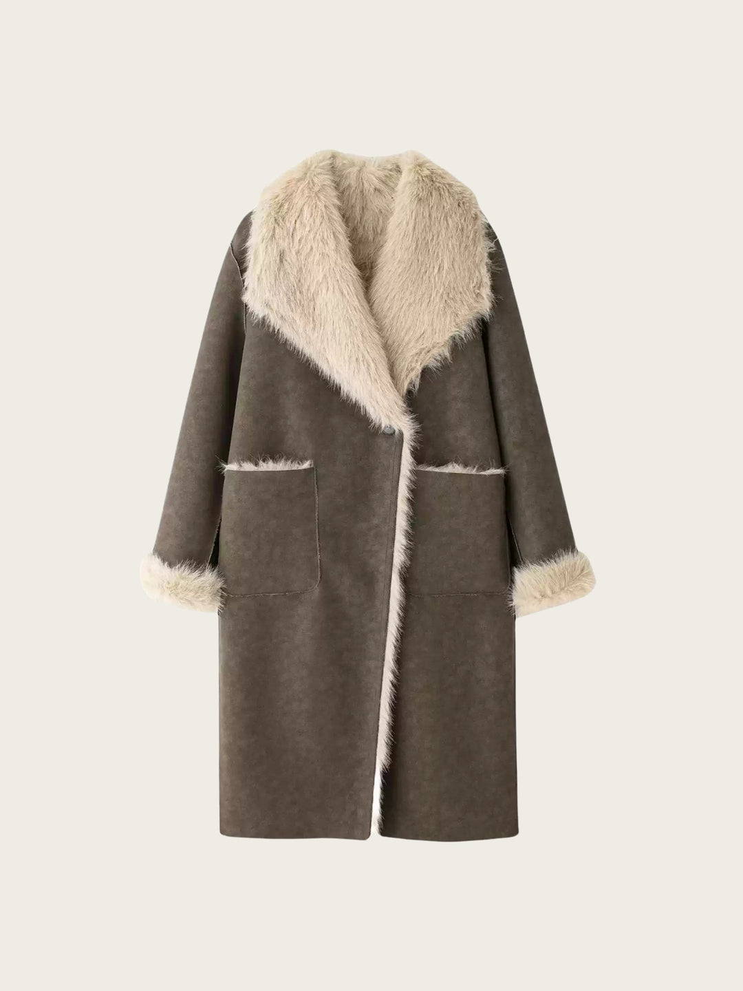 Mulberry Luxe Faux Fur Cuff Wrap Coat