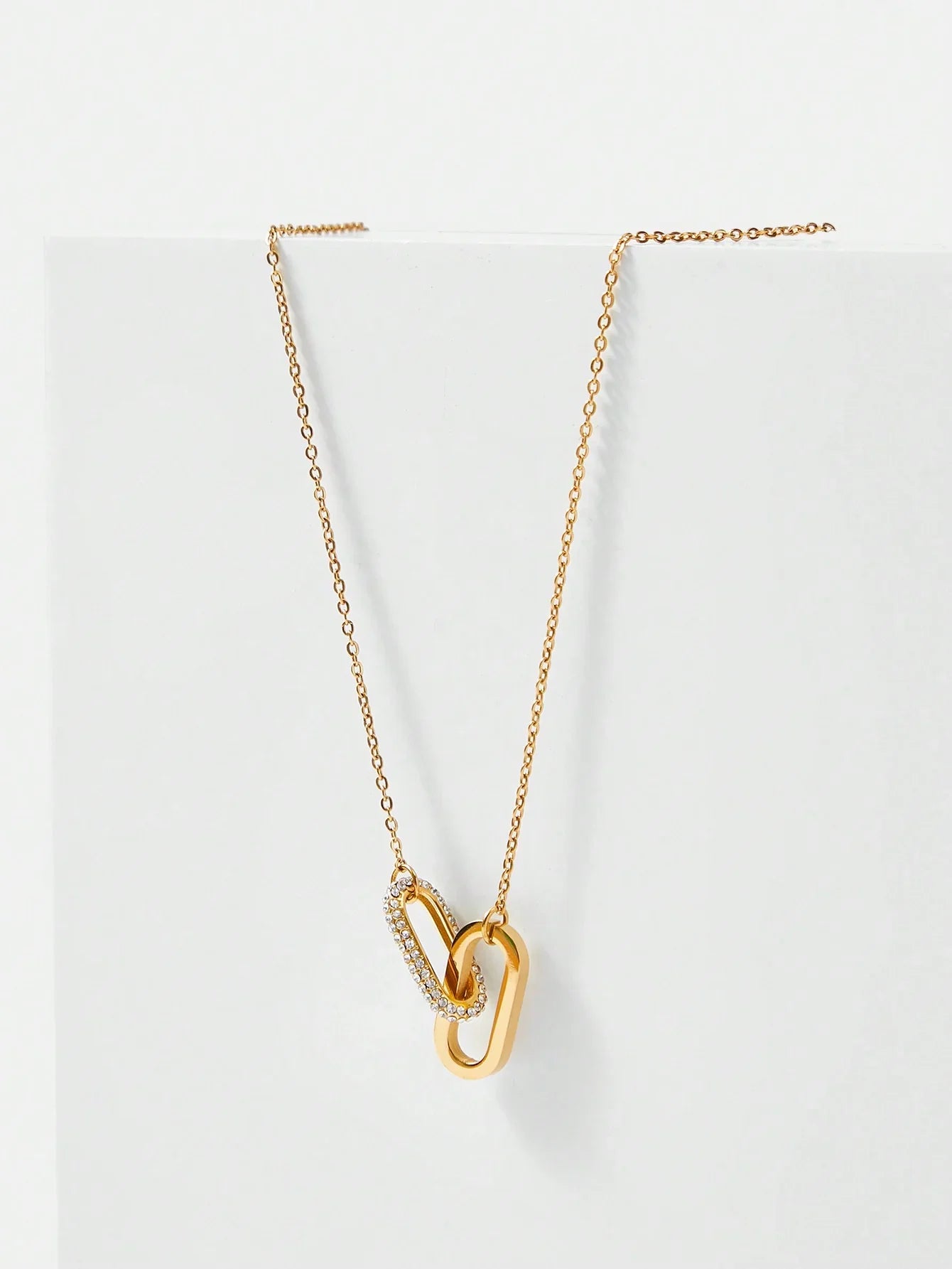 Design: A modern, geometric statement piece that pairs crisp angular pendants with a delicate chain for a refined silhouette. The layered geometric motifs and faceted cubic zirconia accents catch light from every angle, creating an elegant shine that elevates both day and evening looks.