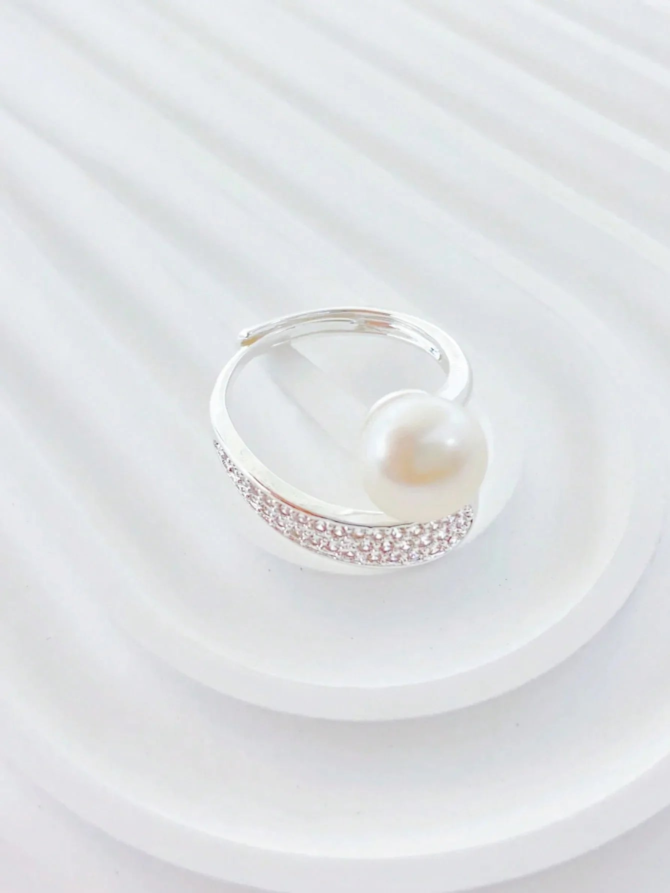 Multicolor Pearl Ring With Crystals For Daily Elegance