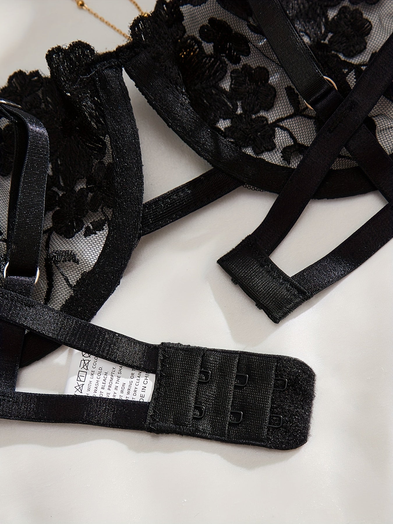 Intricate Flower Embroidery: Beautiful floral embroidery embellishes the lingerie, adding a touch of romantic elegance and a visually appealing detail.