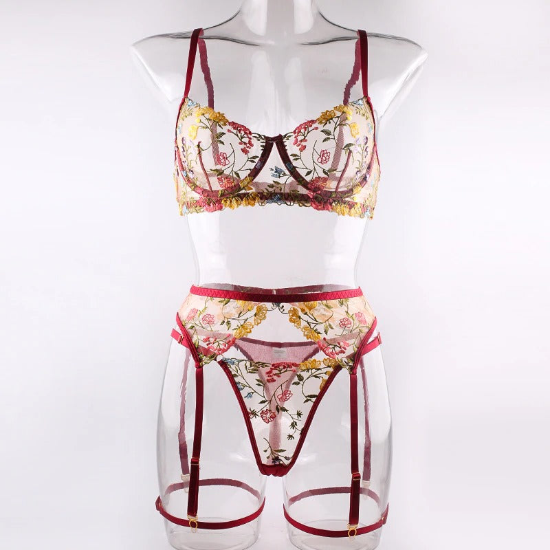 Playful and cute, this three-piece lingerie set includes a bra, thong, and belt. We love this set's stitching and design for a night where you want to have fun and be comfortable. Adorable, see-through lingerie perfect for a boudoir shoot, special evening with your significant other or everyday wear to make yourself feel sexy.