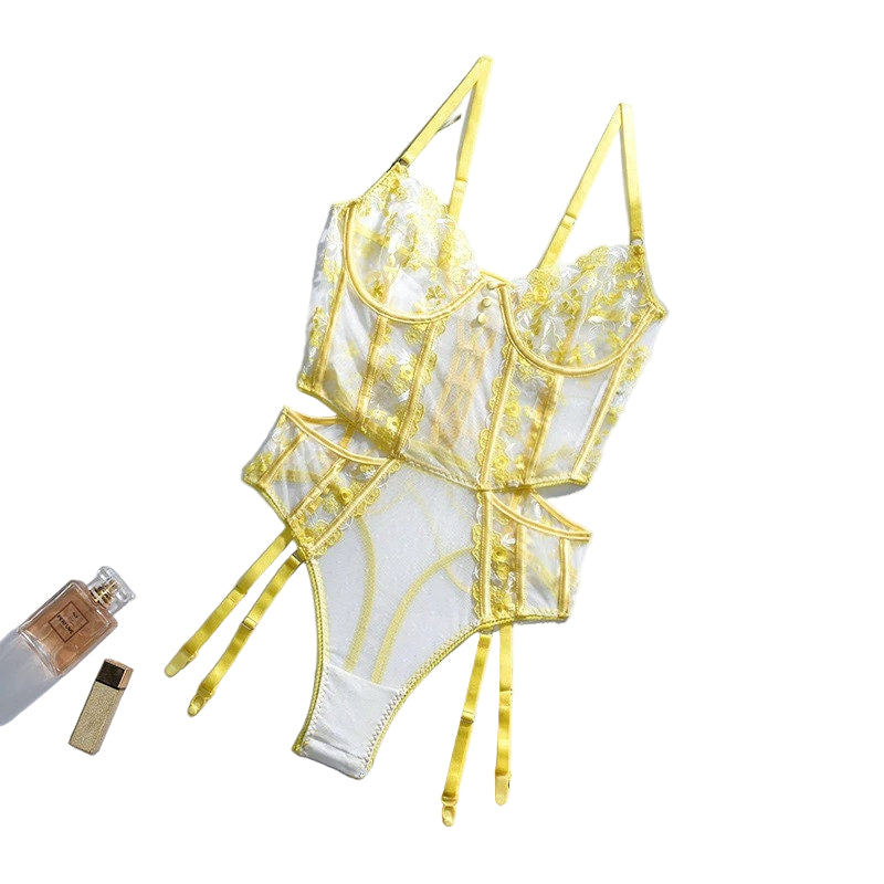 Elvarenne – Flower Lace Deep V Suspender Bodysuit