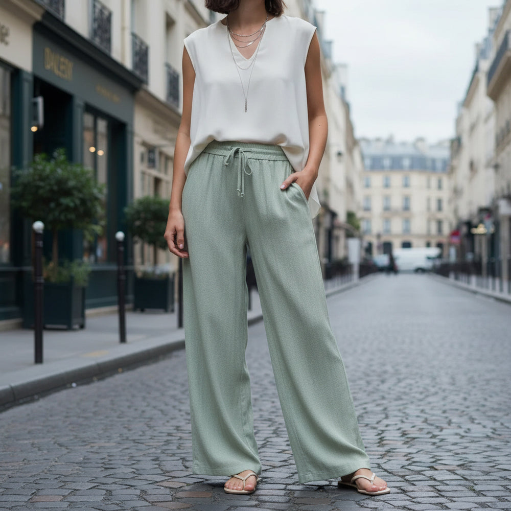 Elegant Palazzo Pants - moss green