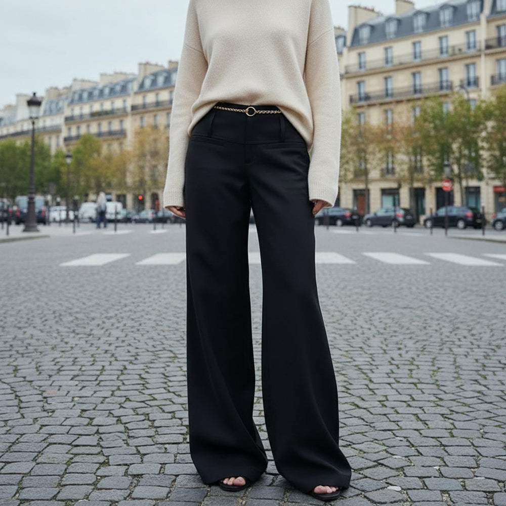 Sleek Wide-Leg Trousers - Black