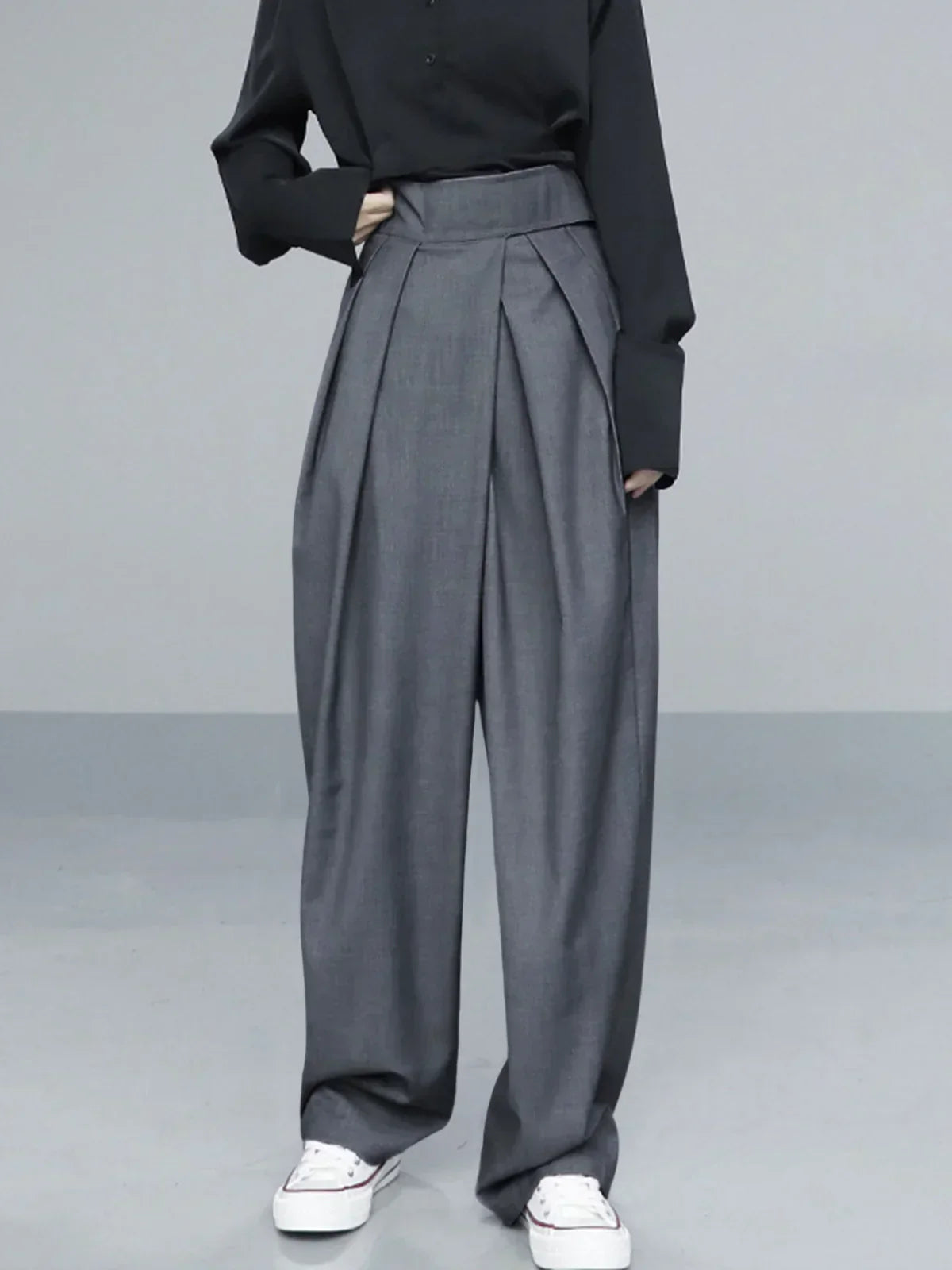 Design: Modern wide-leg pants featuring a unique hook and loop fastener detail, a high-waisted fit, and a sleek, structured silhouette. The contemporary design adds an edgy yet polished touch to any outfit.