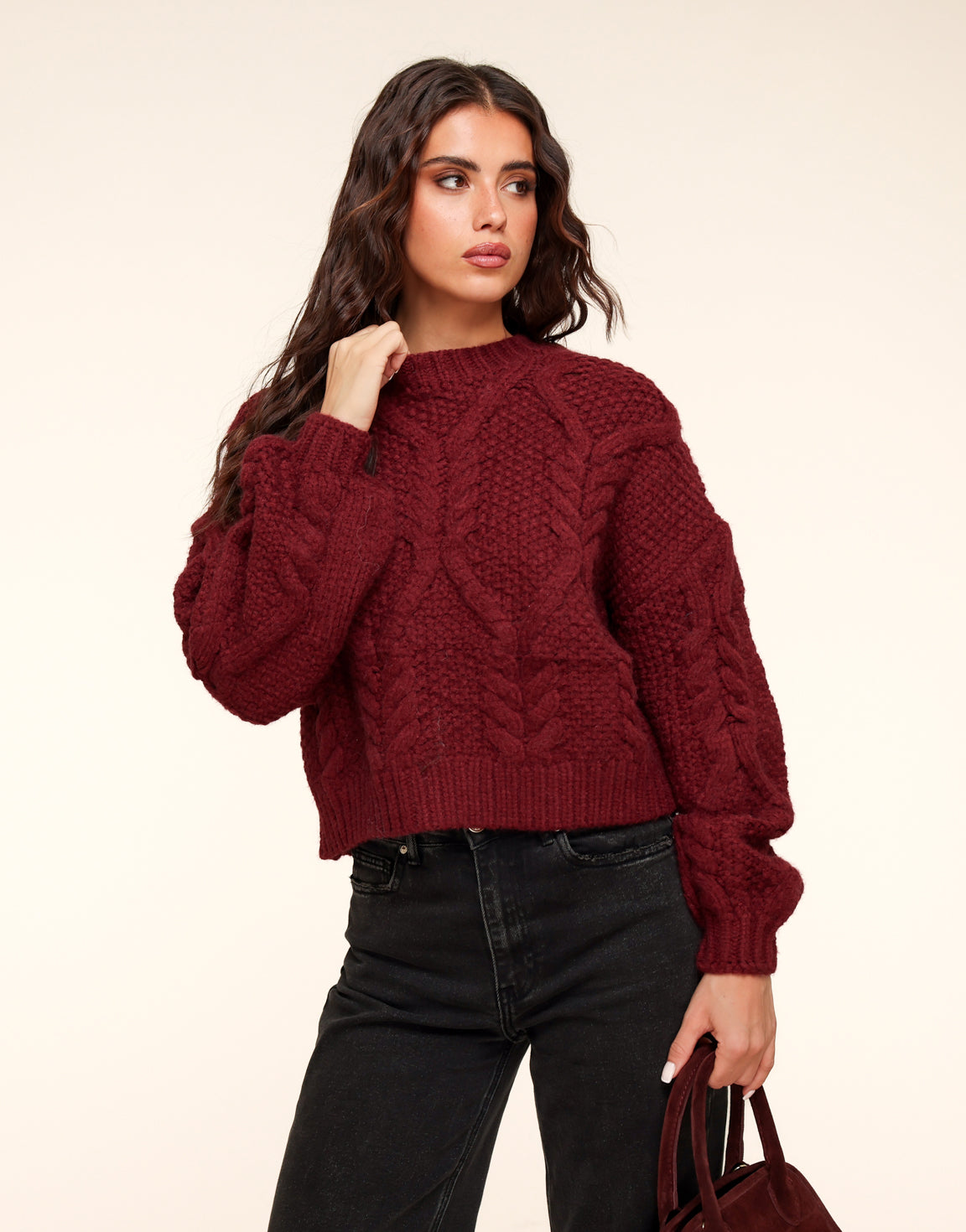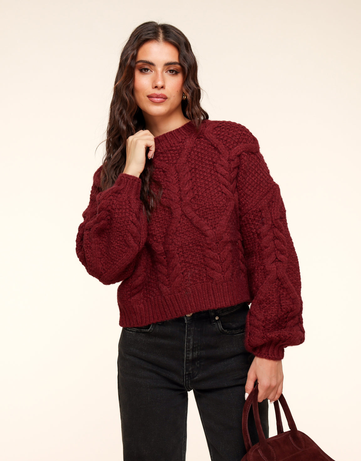 - Details: knitwear / cable detail / short model / loose fit / small puff sleeves