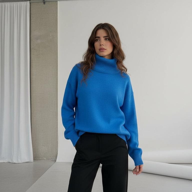 Style the Cloudline Luxe Turtleneck Knit with tailored trousers, a flowing midi skirt, or relaxed denim—it transitions seamlessly from cosy evenings to polished daytime layering. Comfort, refinement, and versatility all in one essential piece.