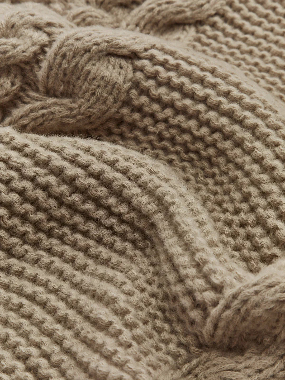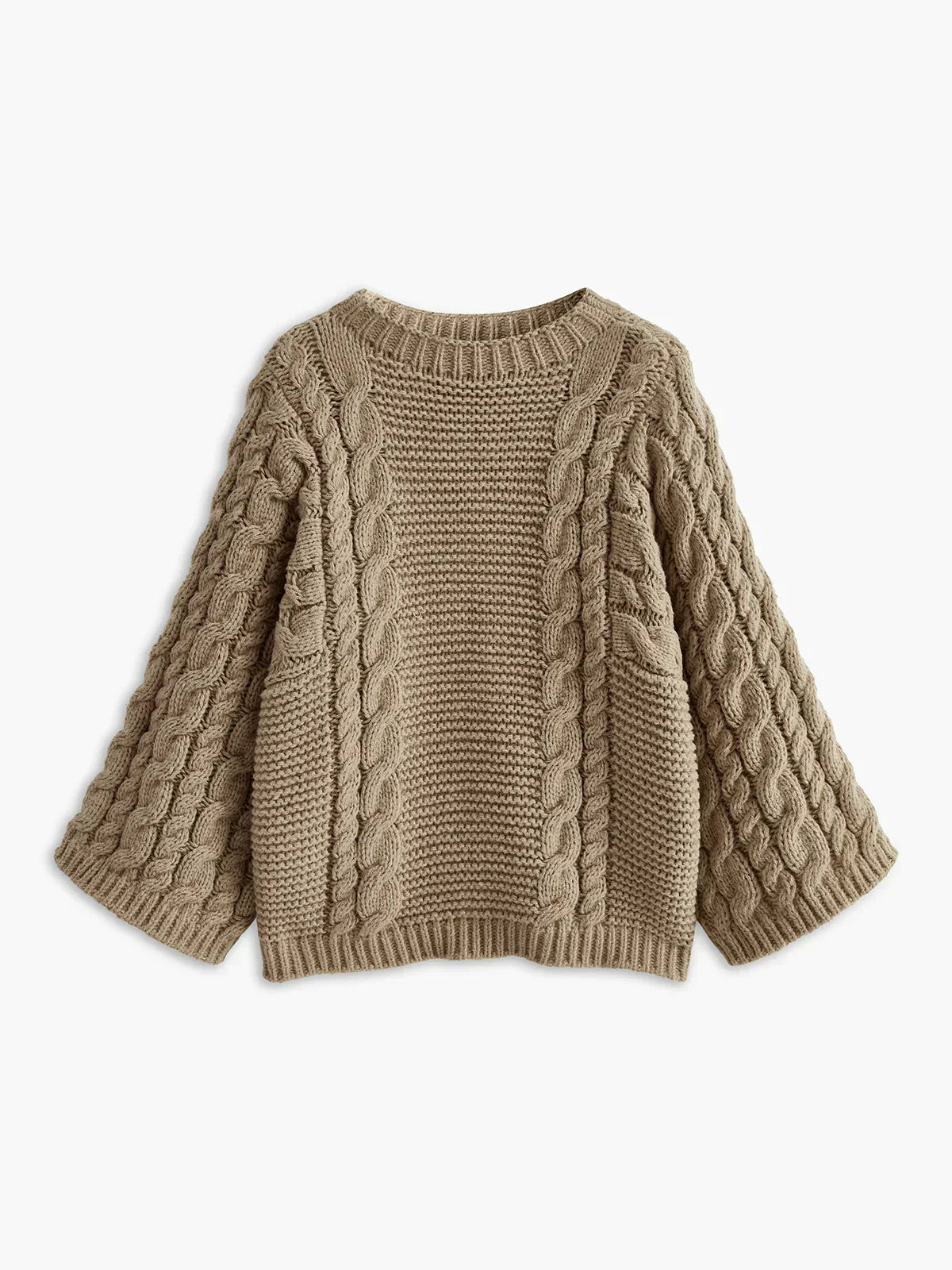 Design: This sweater features a classic round neck and a cable-knit pattern, offering a timeless and cozy look.