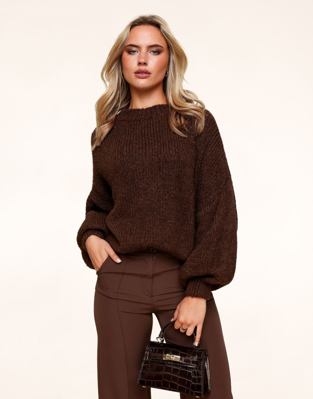 Dark Brown Knitted Wool Off-Shoulder Sweater