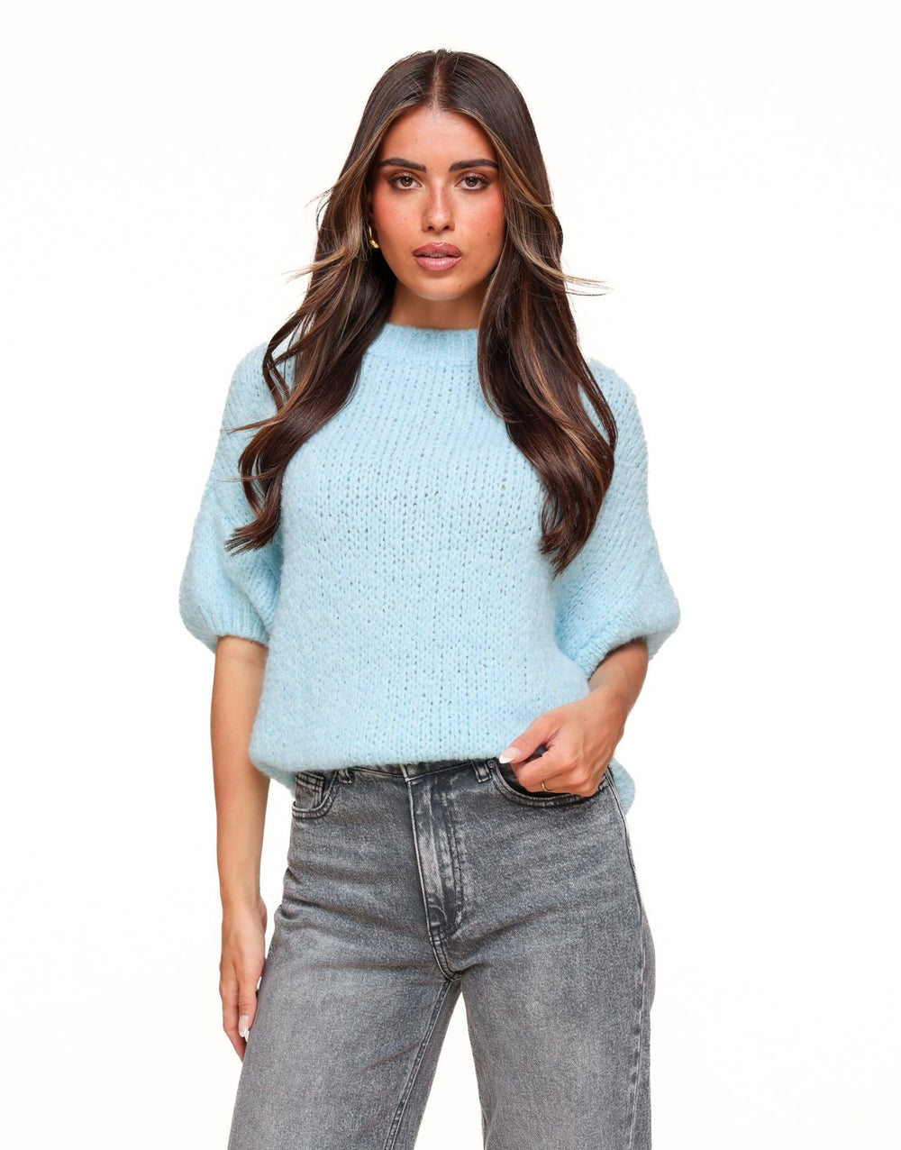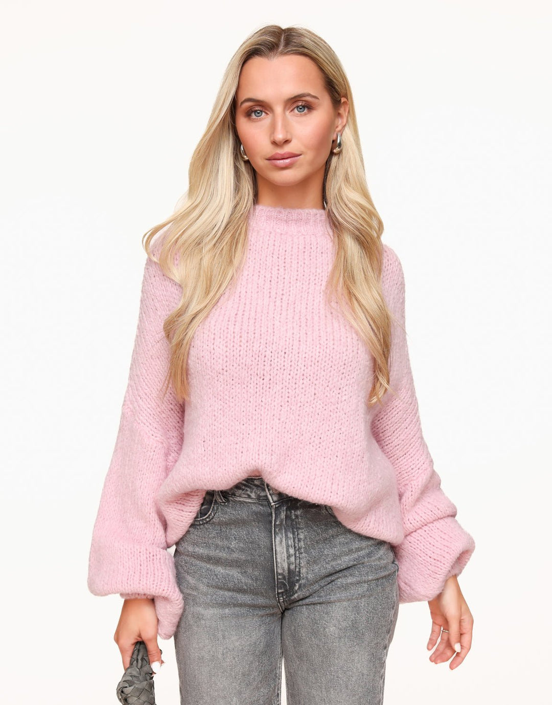 Light Pink Knitted Wool 3/4 Sleeves - Sweater
