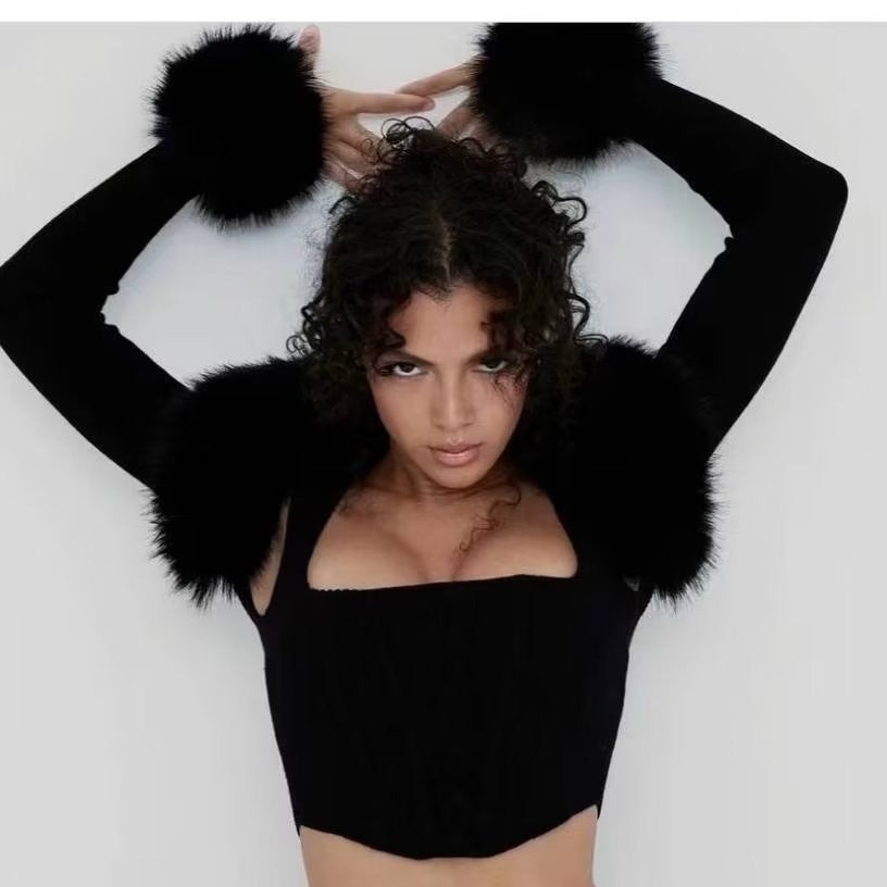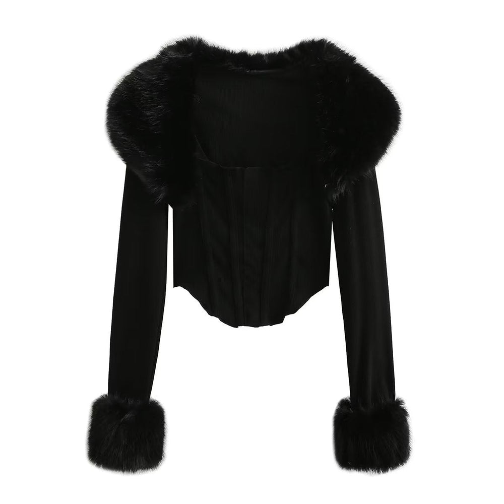 Women's Slim Two-Piece Furry Top Cardigan Set