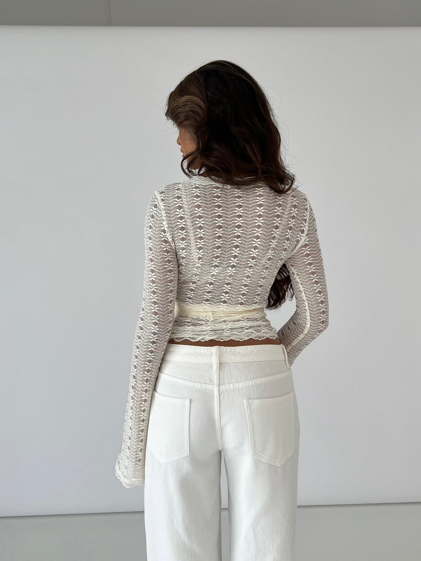 Beautiful wrap top in the softest  material with a lot of stretch that sits nicely on the body. The top has long sleeves and a deep neckline.
