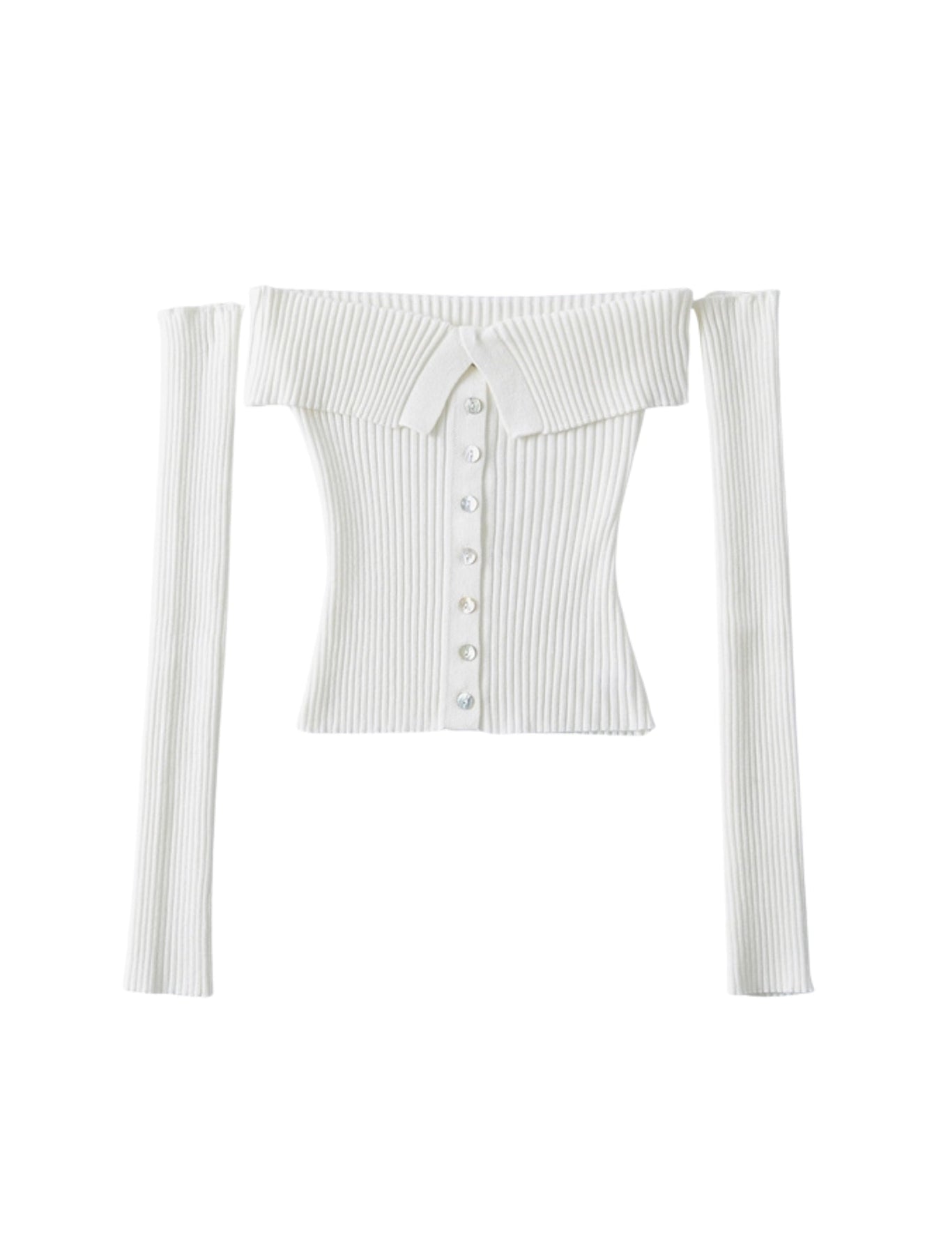 Sleek, structured, and undeniably sultry — the Club Muse Off-Shoulder Knit Top brings elevated drama to your after-dark rotation. Designed with a wide off-shoulder neckline, button-down front, and ribbed stretch knit that hugs your shape, it’s finished with long detached sleeves for a bold, fashion-forward twist.