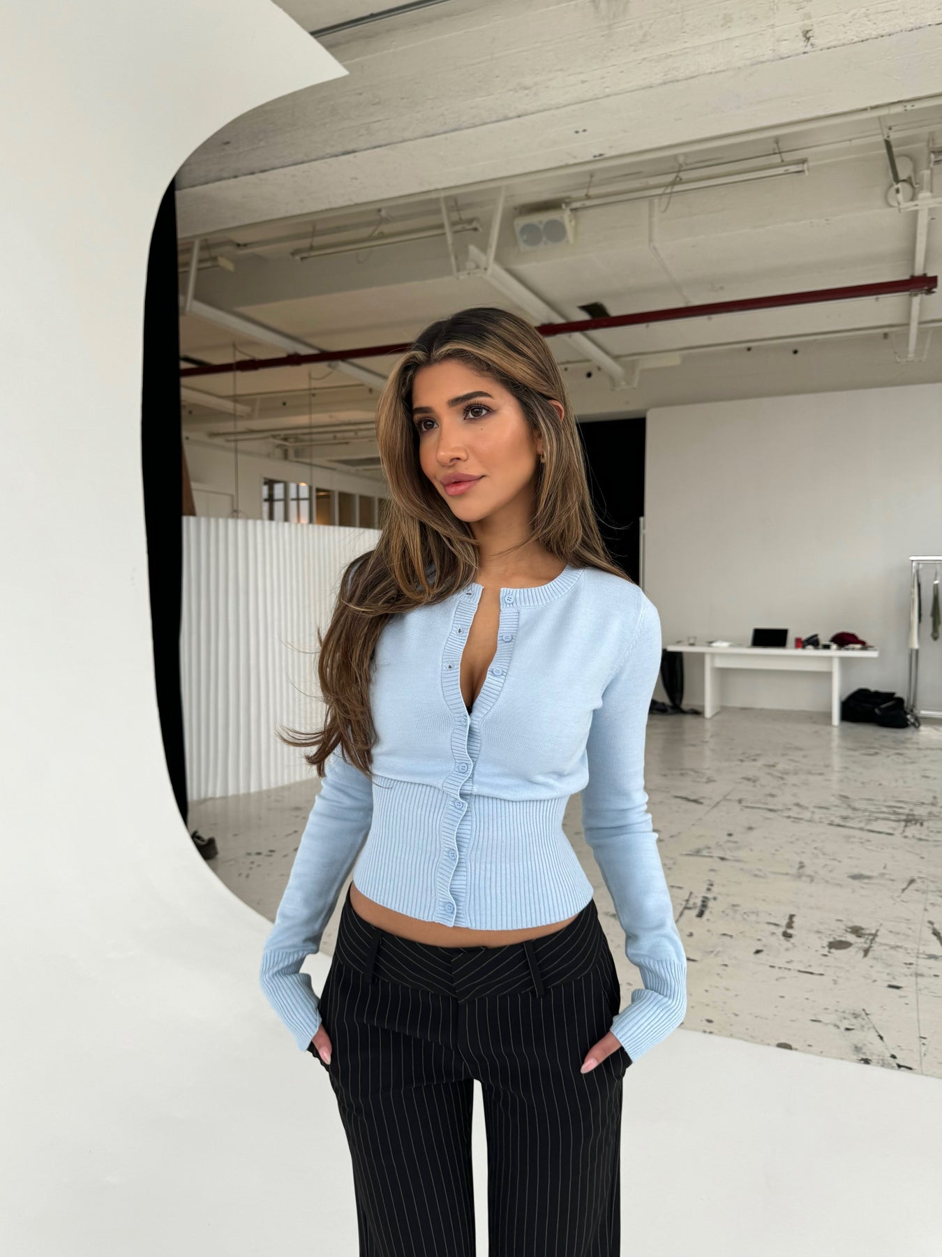 Cardigan in the softest material, made from a wool blend. It has buttons and sits nicely on the body.