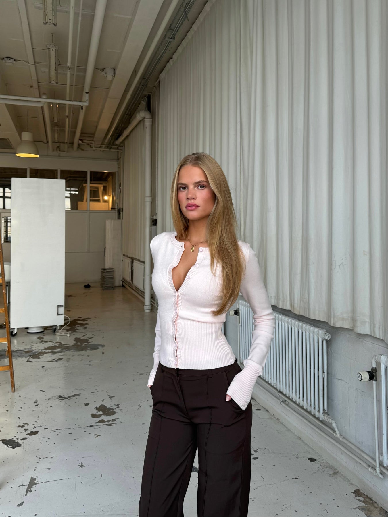 Cardigan in the softest material, made from a wool blend. It has buttons and sits nicely on the body.