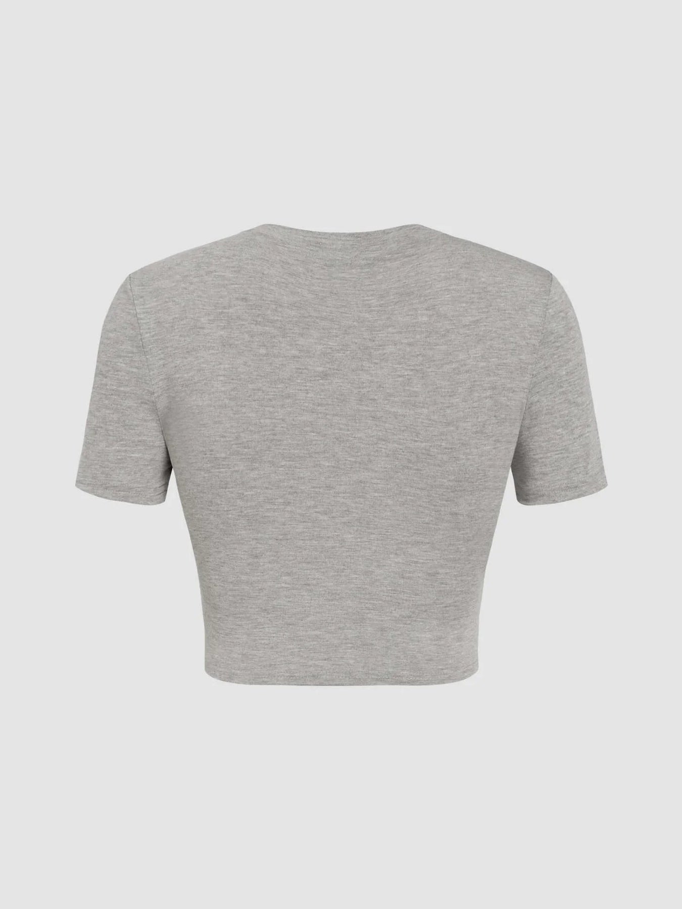 Design: A minimalist t-shirt featuring a sleek half-high collar, short sleeves, and a fitted silhouette. The versatile design offers effortless elegance for layering or standalone wear.