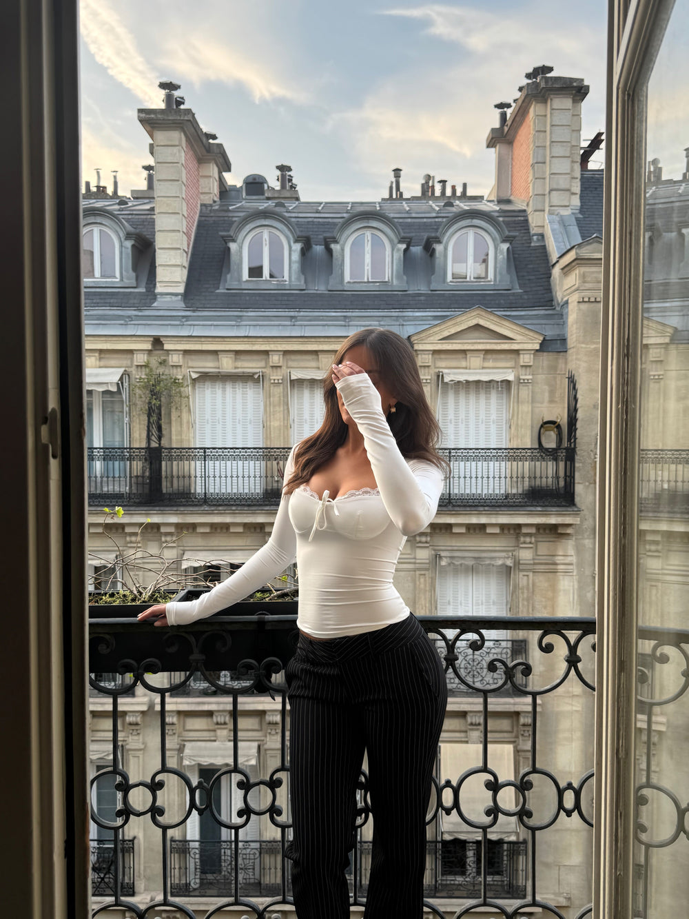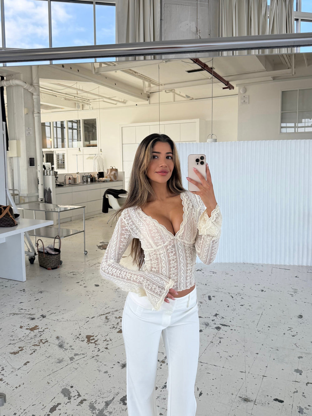 Lara lace long sleeve top - cream