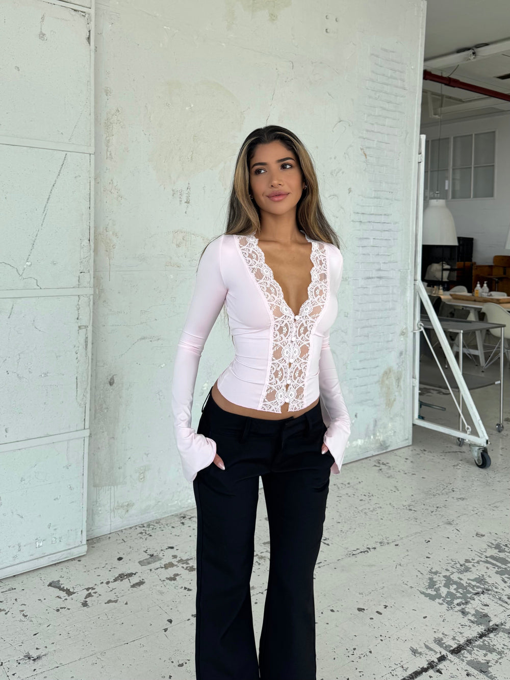 Lara lace long sleeve top - Pink