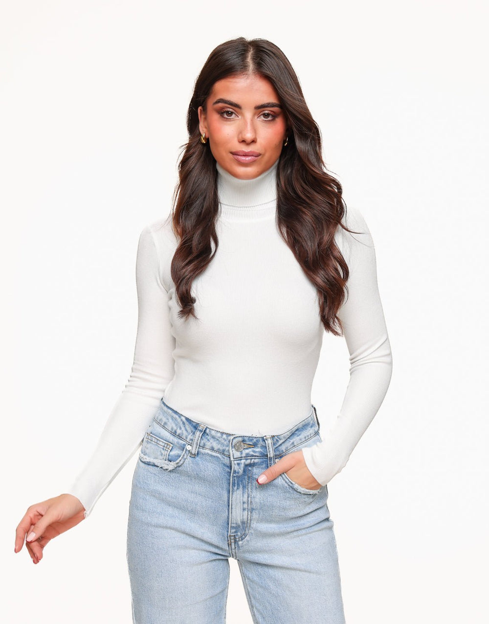 White Basic Turtleneck - Top